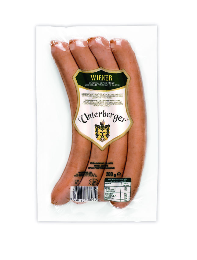 WIENER Unterberger I WURSTEL WURSTEL DI PURO SUINO AFFUMICATURA CON LEGNO DI FAGGIO Nome articoloArticoloFormatoConfezionePeso ProdottoPezzi/cartoneUsoScheda ProdottoWIENER 4 PZ Gr 200e510AsportoAtmGr [...]