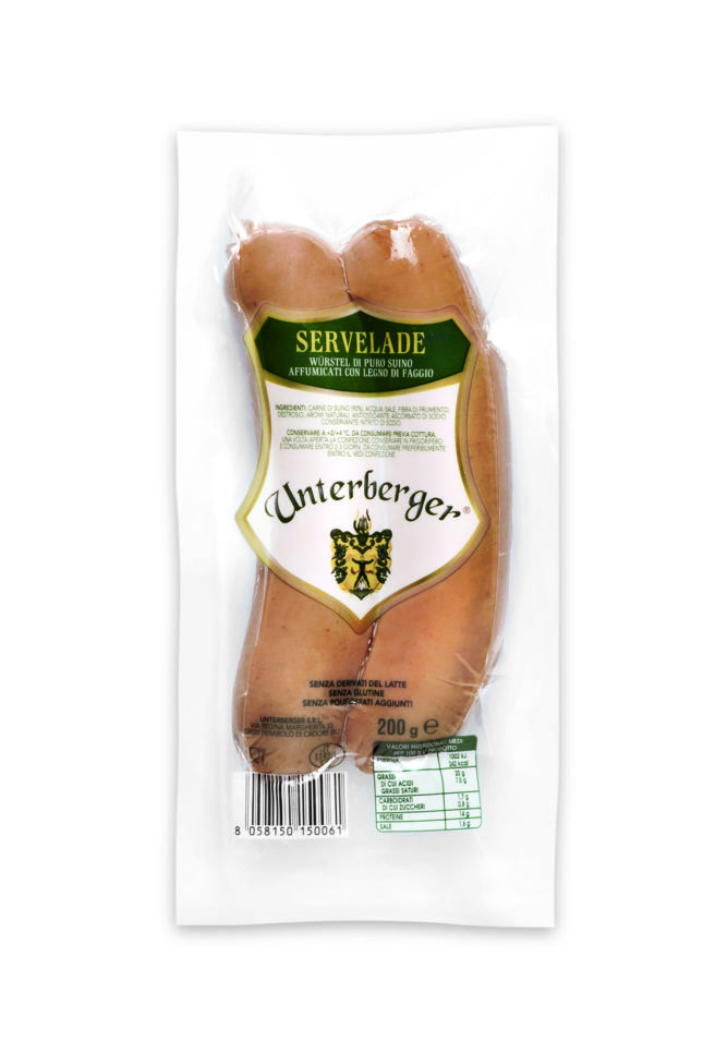 SERVELADE Unterberger I WURSTEL WURSTEL DI PURO SUINO AFFUMICATURA CON LEGNO DI FAGGIO Nome articoloArticoloFormatoConfezionePeso ProdottoPezzi/cartoneUsoScheda ProdottoSERVELADE 2 PZ Gr 200e511AsportoAtmGr [...]