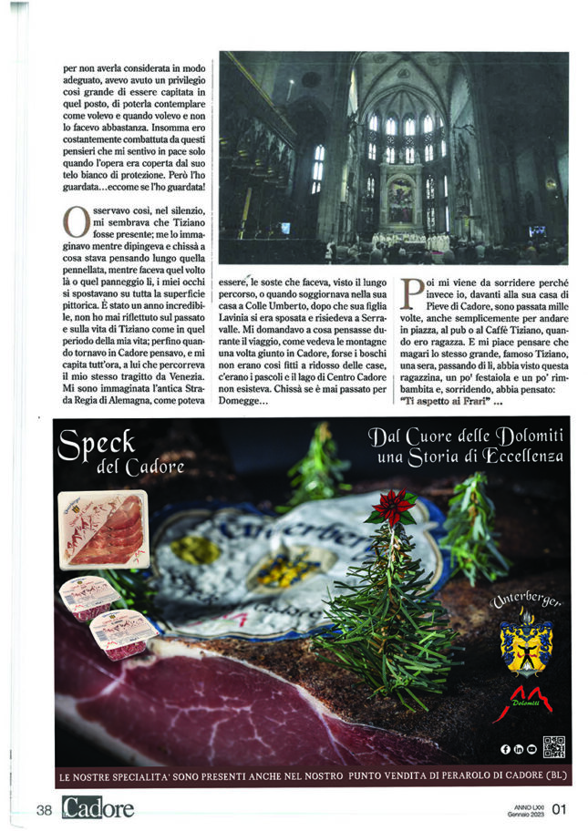 [...]Una rassegna stampa che dal 2020 al 2023 coinvolge il periodico d’informazione IL CADORE – Ci soffermiamo sul numero di Gennaio 2023 con una pagina adv della linea di Speck del Cadore Dolomiti [...]