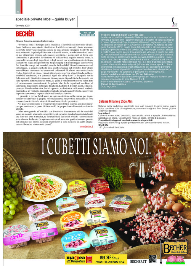 Sul numero di Gennaio 2023 della rivista Salumi & Consumi – all’interno dello speciale “Private Label” – Bechèr da anni si distingue per la capacità e la sensibilità di innovare e diversificare [...]