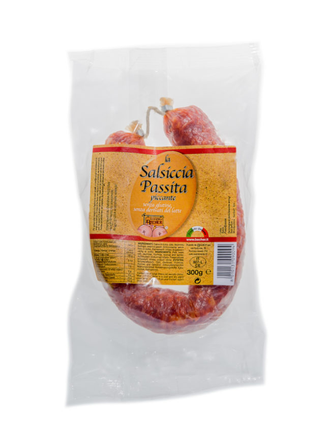 SALSICCIA PASSITA PICCANTE Becher I SALAMI MIGLIORI CARNI MAGRE DI SUINO, INSACCATA IN BUDELLO NATURALE SAPORE CARATTERISTICO PICCANTE CON RETROGUSTO AFFUMICATO, TENERO E SCIOGLIEVOLE AL PALATO Nome [...]